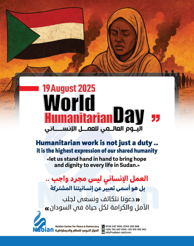 Statement: Nubian Centre for Peace and Democracy Commemorates World Humanitarian Day – August 19, 2025, .. An Urgent Call for Solidarity with Sudanبيان: المركز النوبي للسلام والديمقراطية يحيي اليوم العالمي للعمل الإنساني “19 أغسطس 2025، .. نداء عاجل للتضامن مع السودان
